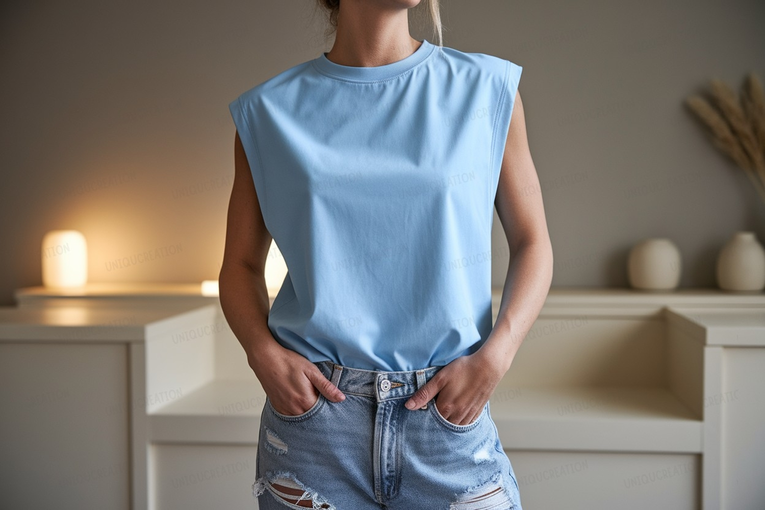 Fashion Shirt Clothing Casual Mockup Blue Jeans Denim Ripped Sleeveless