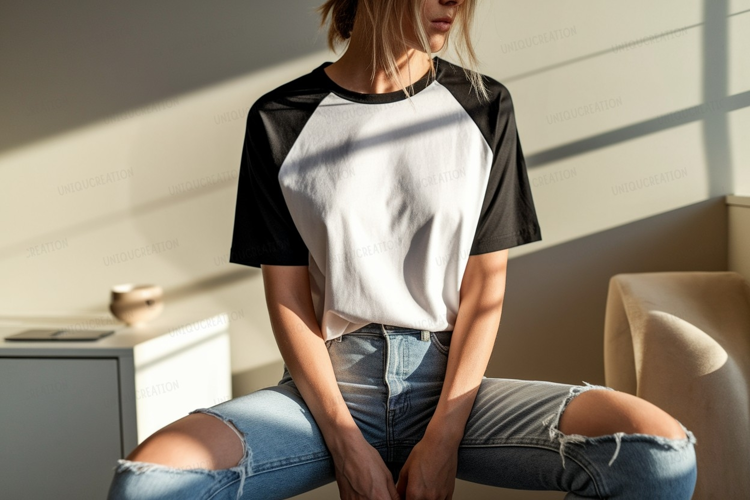 Fashion Black T-shirt Clothing Casual Mockup Woman Jeans White Ripped