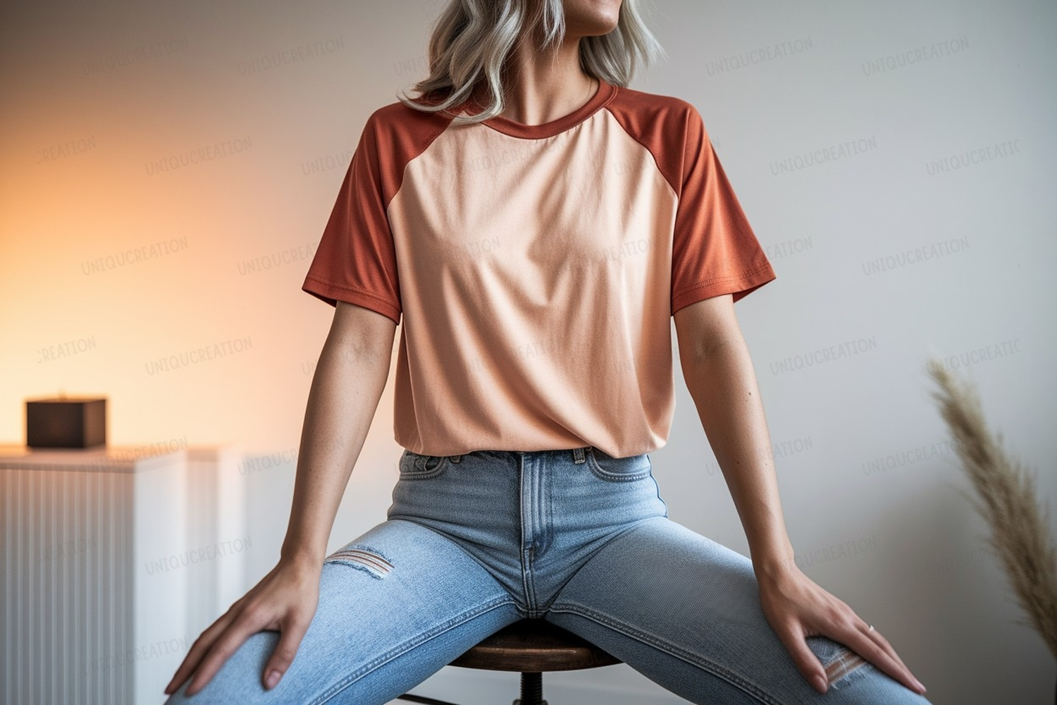 Similar Design Products to Orange peach raglan shirt light wash ripped jeans sleeves