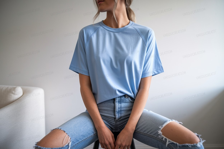 Similar Design Products to Blue shirt ripped jeans mockup image