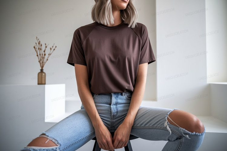Fashion Shirt Clothing Casual Mockup Woman Brown Blue Jeans Ripped