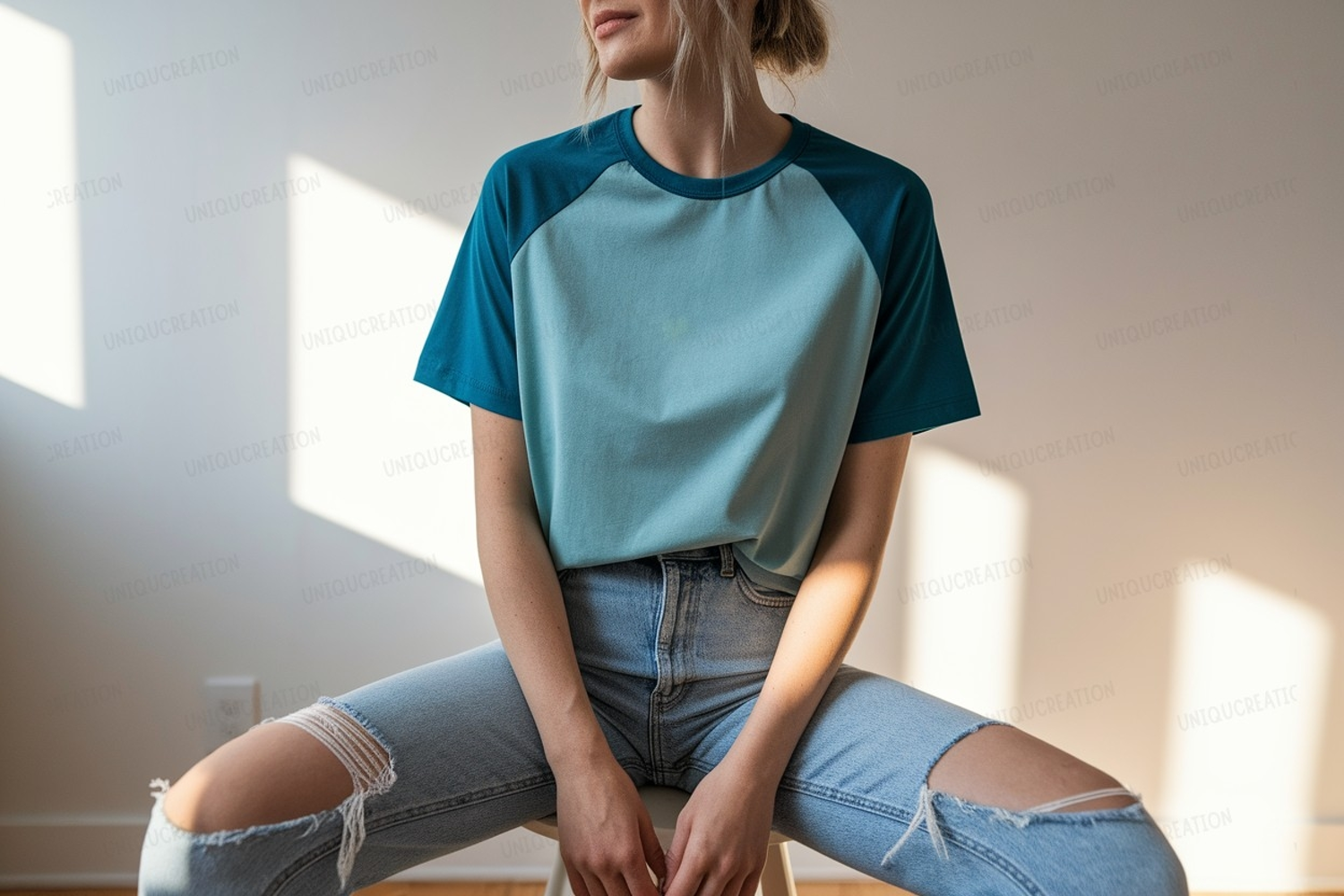 Fashion Shirt Clothing Casual Mockup Blue Teal Female T Raglan