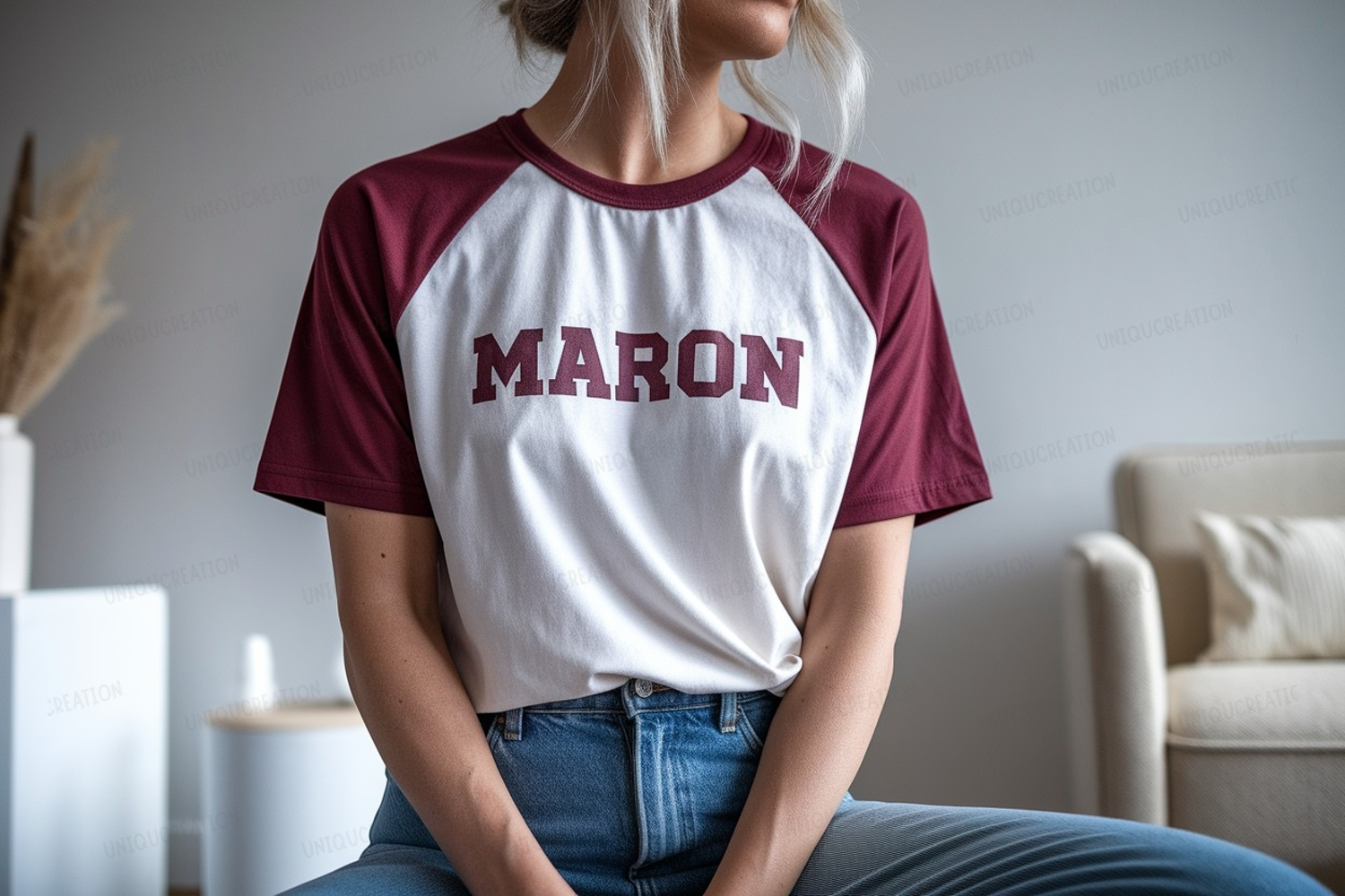 Similar Design Products to Maroon white raglan shirt mockup apparel t-shirt