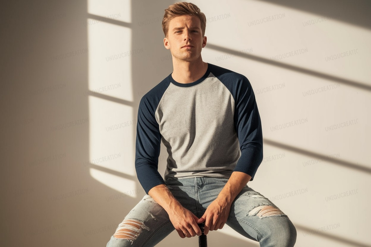 Similar Design Products to Young man wearing baseball shirt and ripped jeans male