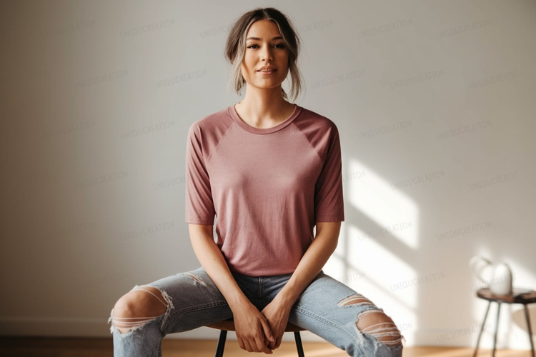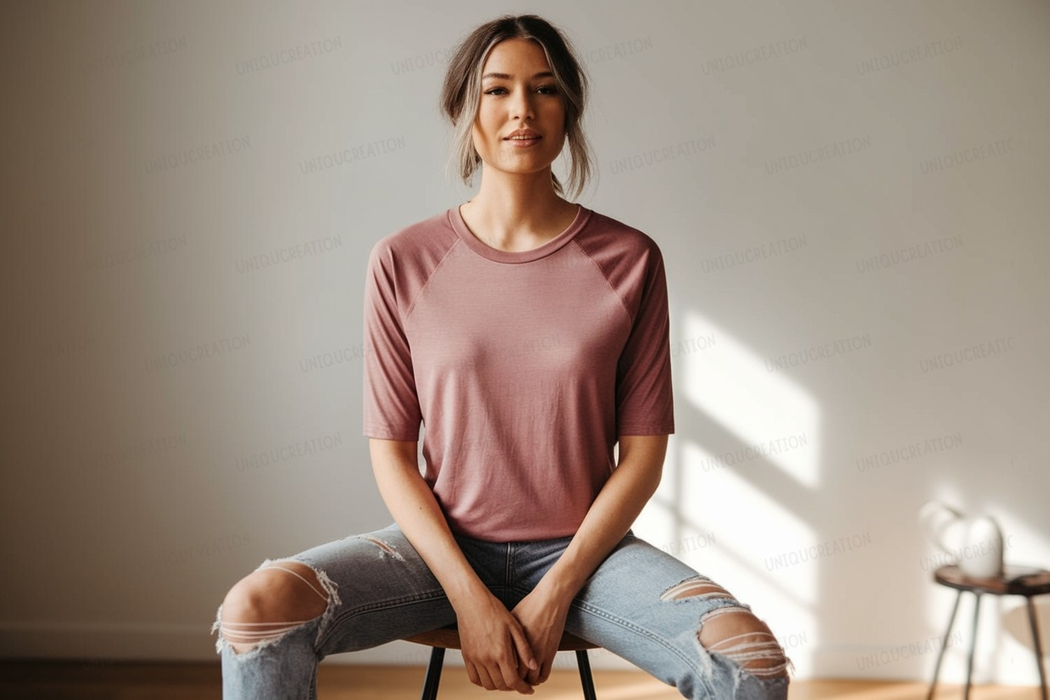Fashion Shirt Pink Clothing Casual Mockup Apparel Woman Jeans Ripped