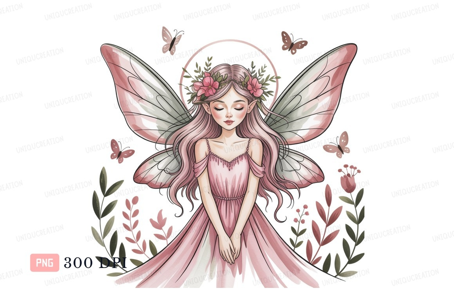 Pink fairy with butterfly wings and flowers dress butterflie example image 1