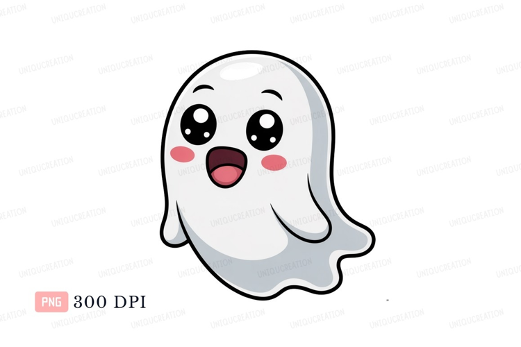 Happy white ghost with pink cheeks cute kawaii example image 1