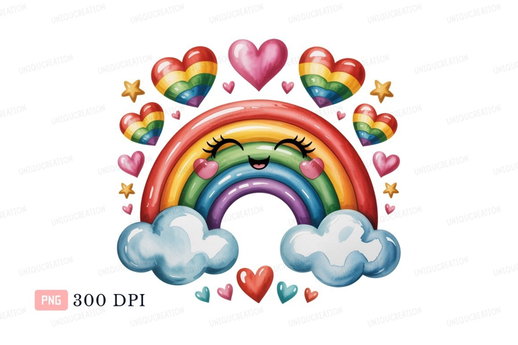 Happy rainbow hearts stars clouds image example image 1