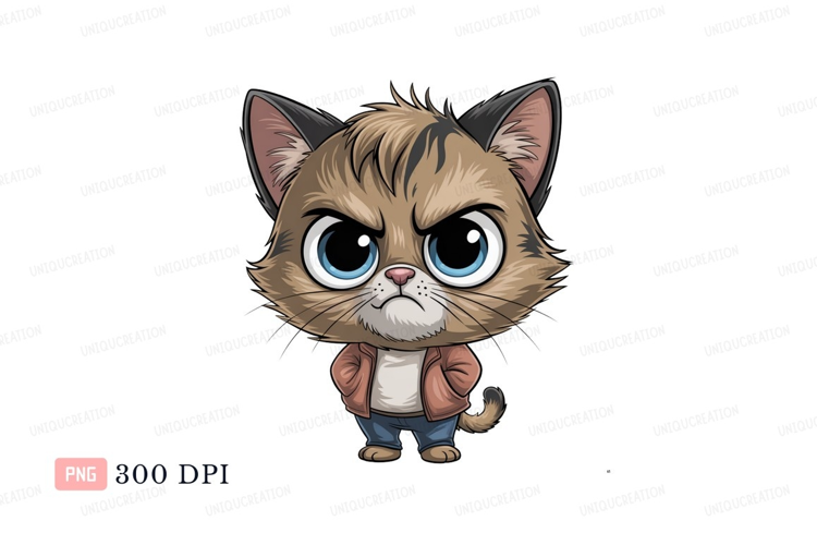 Grumpy Feline Character cartoon blue example image 1