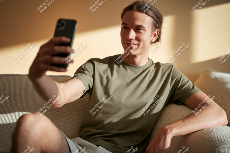 Similar Design Products to Man taking selfie on couch phone casual