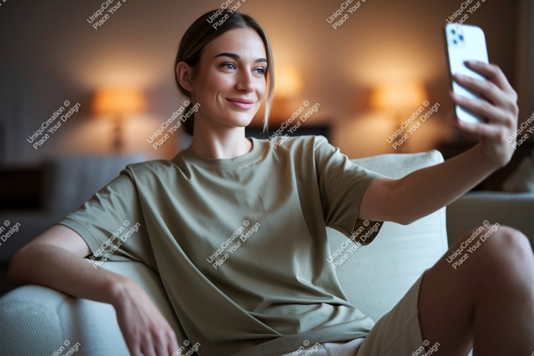 Similar Design Products to Woman taking selfie on couch phone indoor