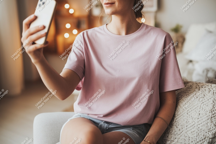 Shirt Pink Woman Lights Home Phone Indoor Selfie Couch Shorts