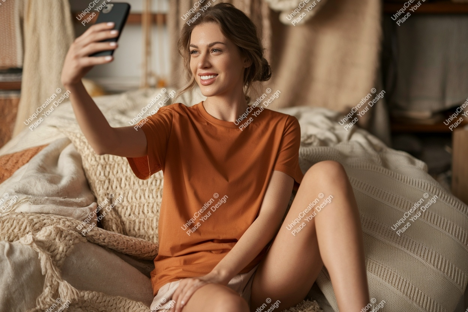 Similar Design Products to Woman taking selfie on bed phone blanket