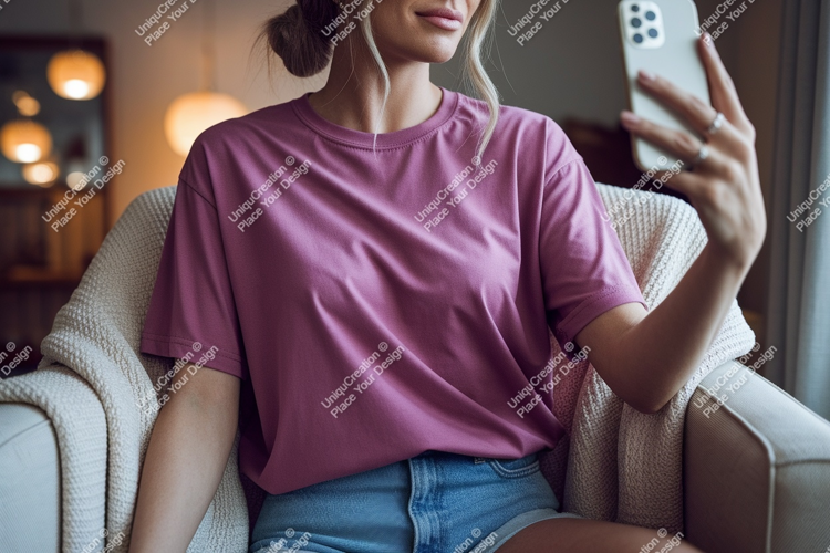 Shirt Pink Woman Chair Blanket Phone Denim T Selfie Shorts