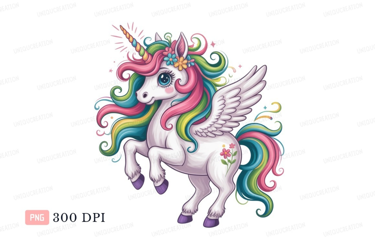 Whimsical winged unicorn with rainbow mane pegasus example image 1