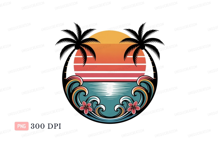 Similar Design Products to Sunset ocean waves palm trees flowers image