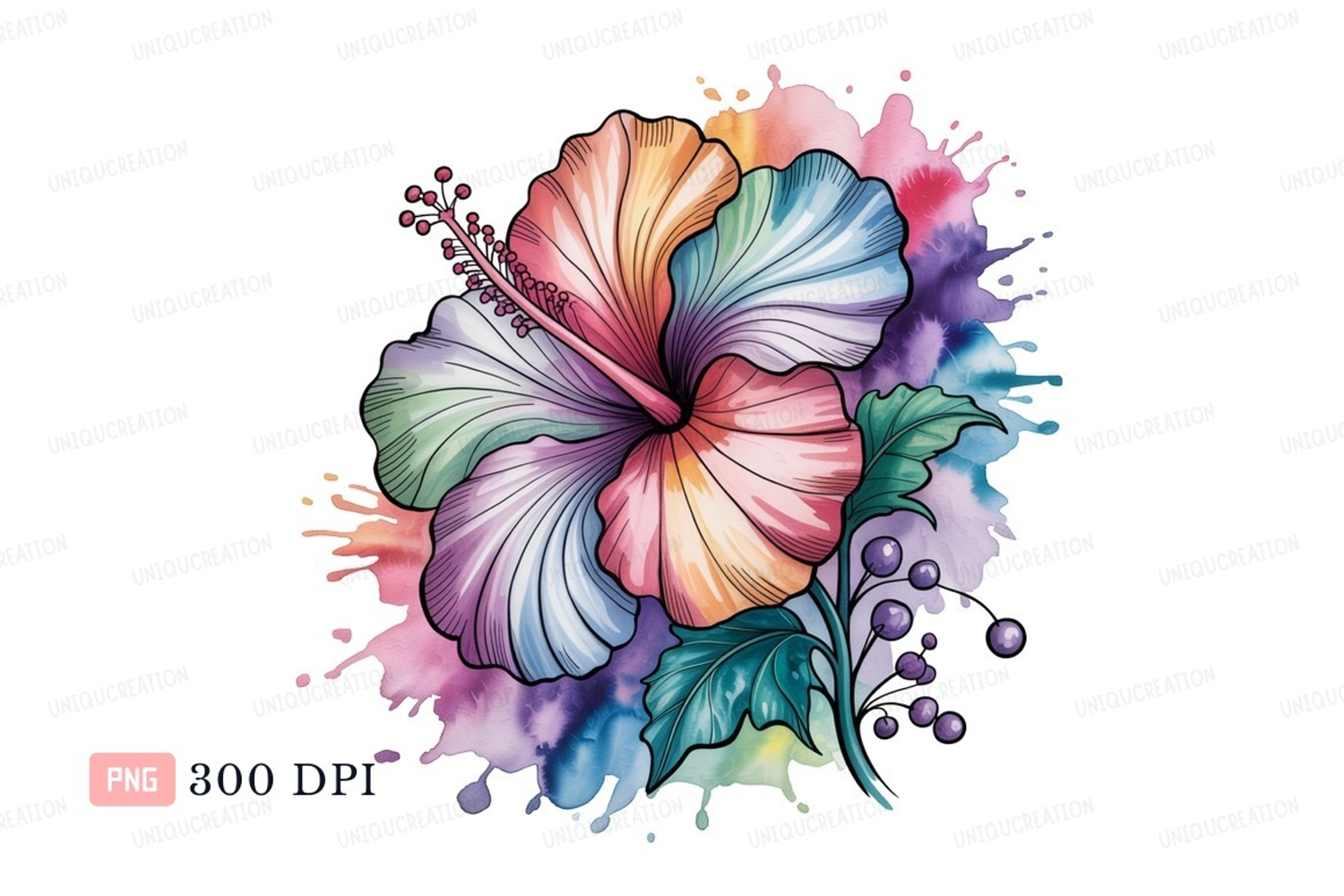 Similar Design Products to Rainbow hibiscus watercolor splash flower
