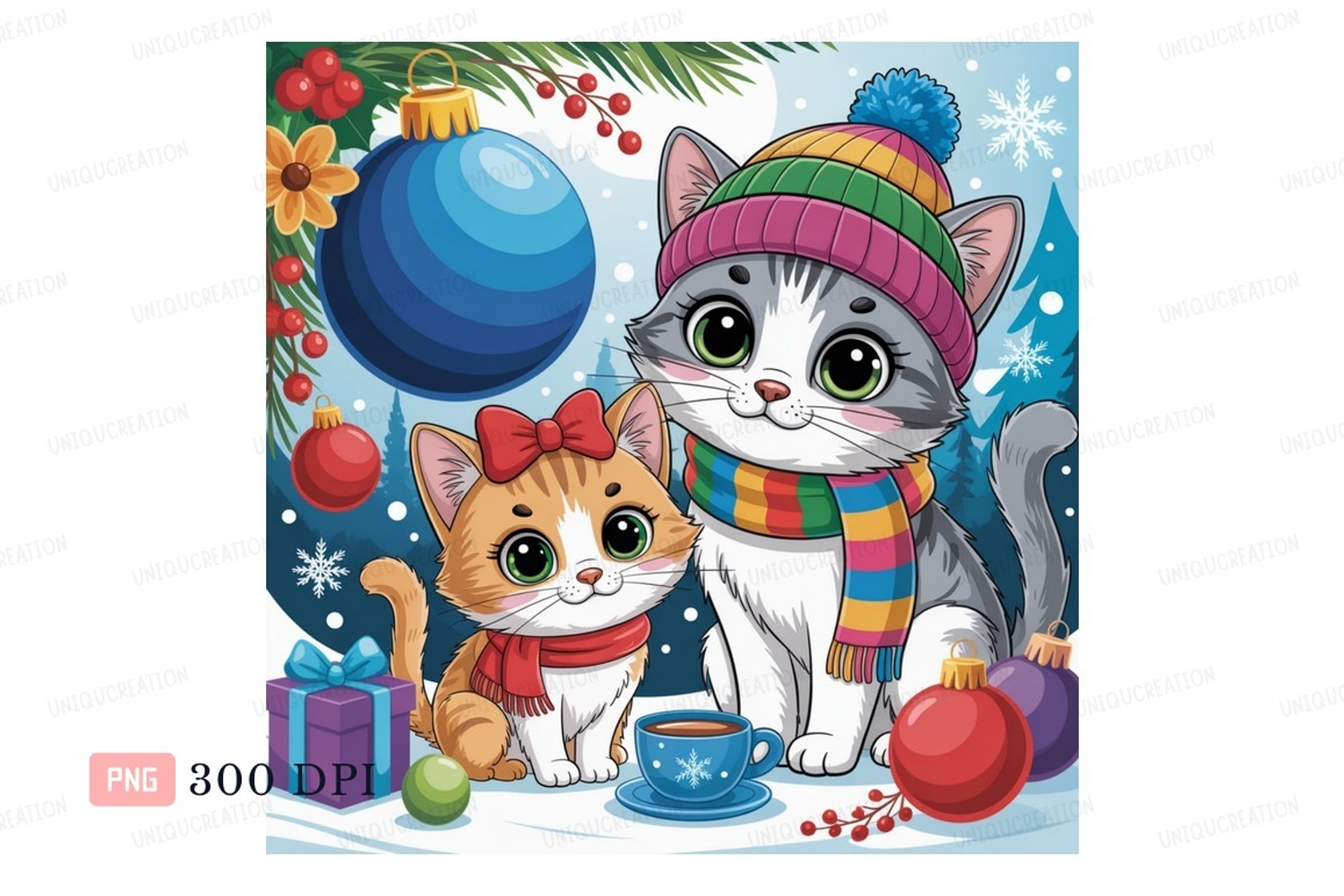 Kittens Christmas Celebration ornaments scarf example image 1