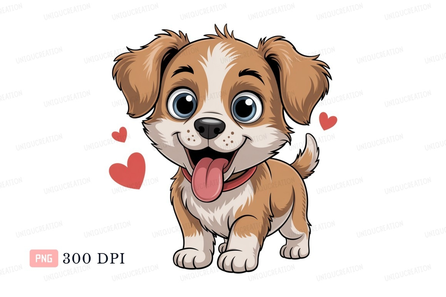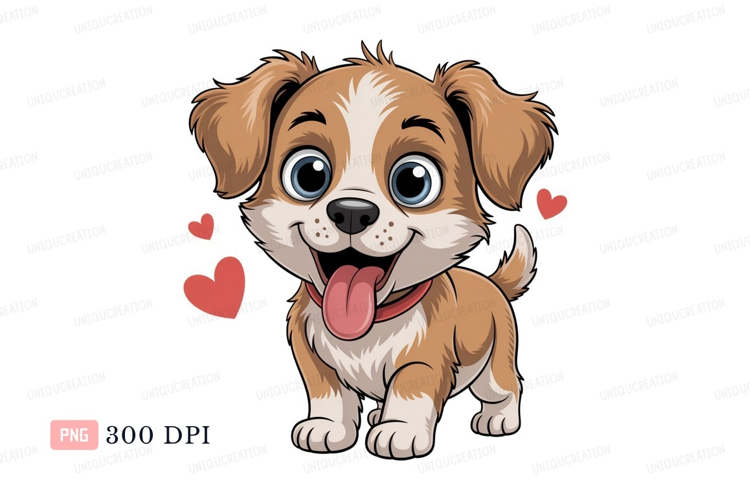 Adorable puppy with blue eyes and red collar cute cartoon example image 1