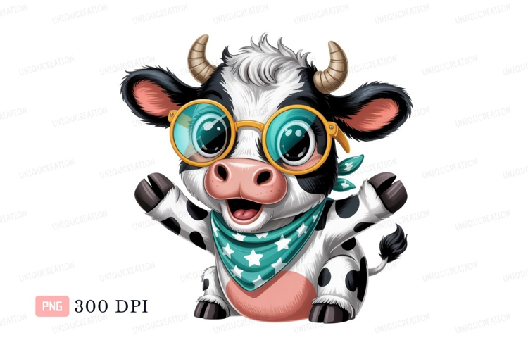Cute cow wearing glasses and bandana animal example image 1