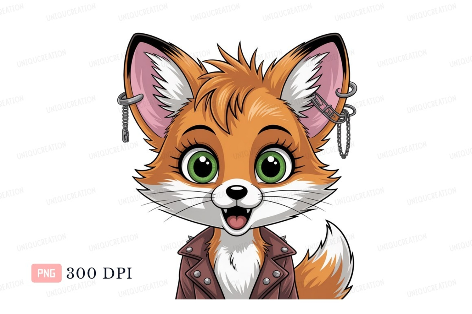 Similar Design Products to Punk fox with green eyes and leather jacket image
