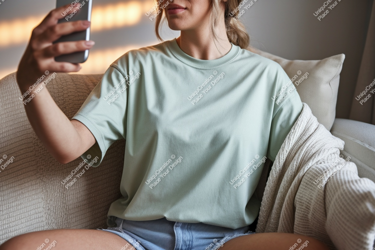 Light Shirt Casual Woman Home Phone T Comfortable Selfie Relaxed