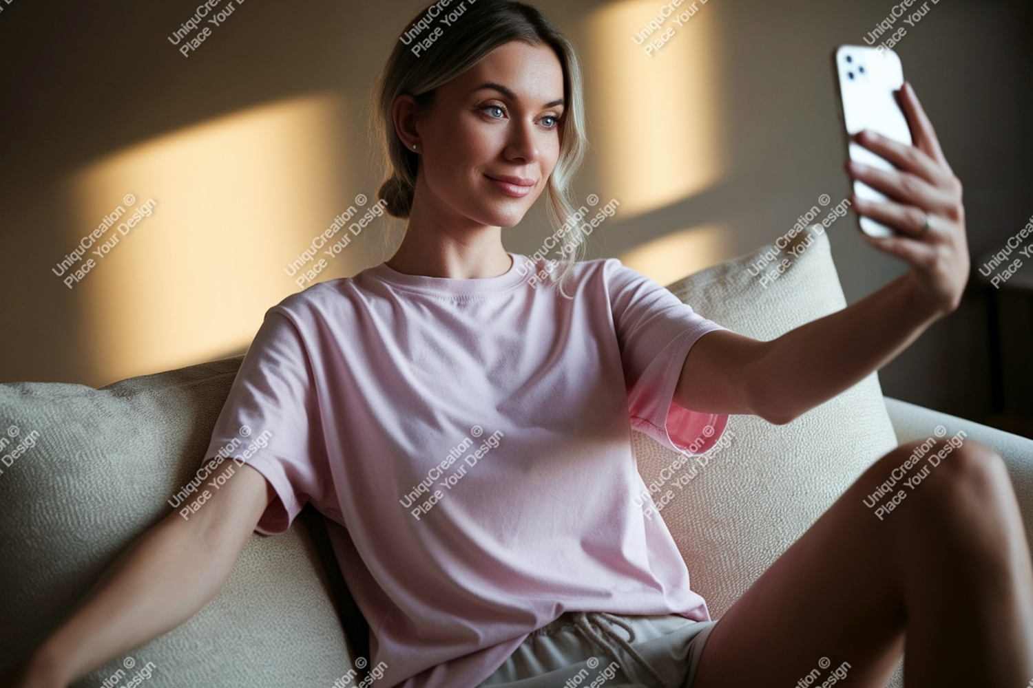 Similar Design Products to Woman taking selfie on sofa phone casual