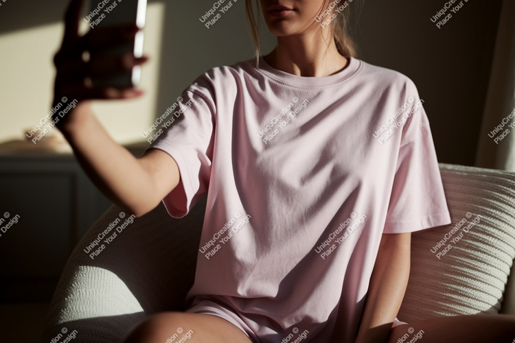 Light Shadow Shirt Pink Casual Woman Home Phone Comfortable Selfie
