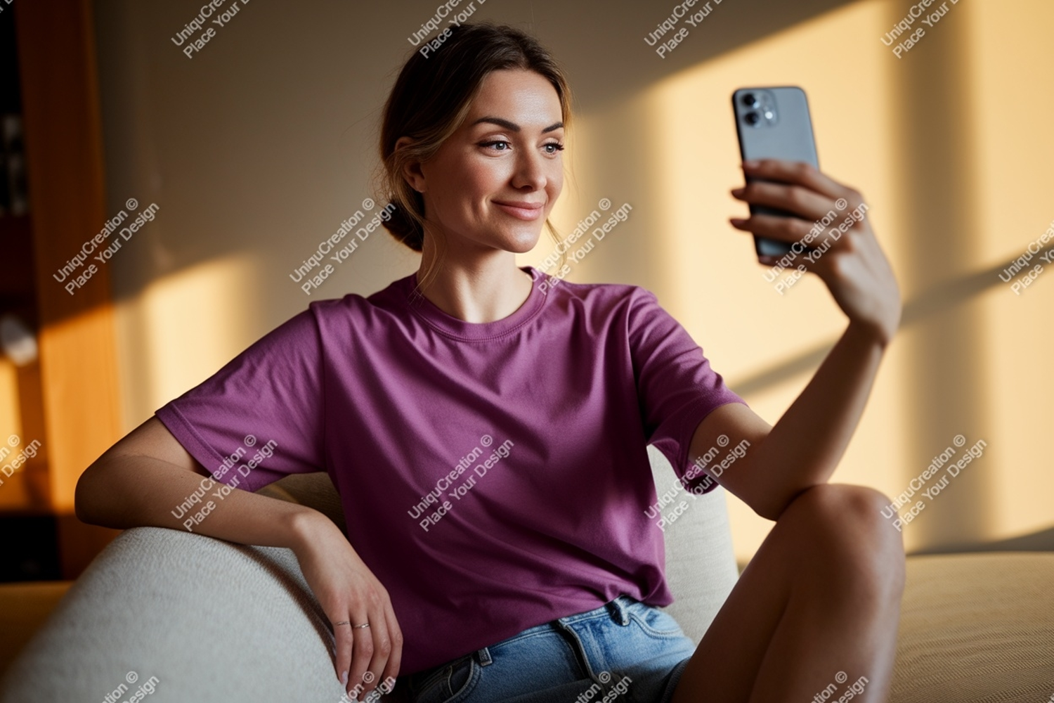 Similar Design Products to Woman taking selfie with phone indoor casual