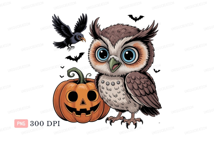 Cute owl jack lantern crow bats pumpkin example image 1