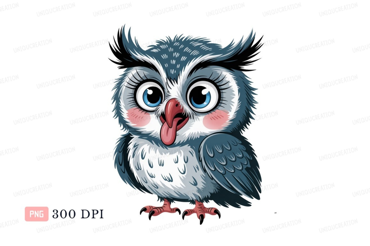 Fluffy owl with blue eyes and pink cheeks bird cute example image 1