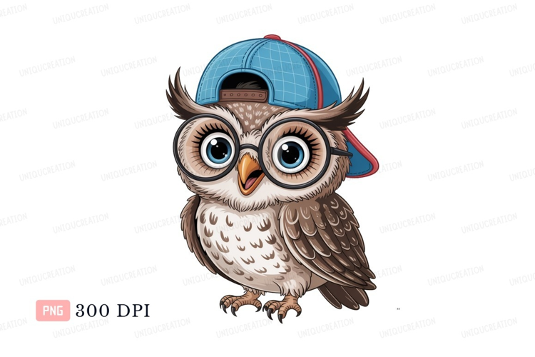 Similar Design Products to Owl wearing cap and glasses blue brown