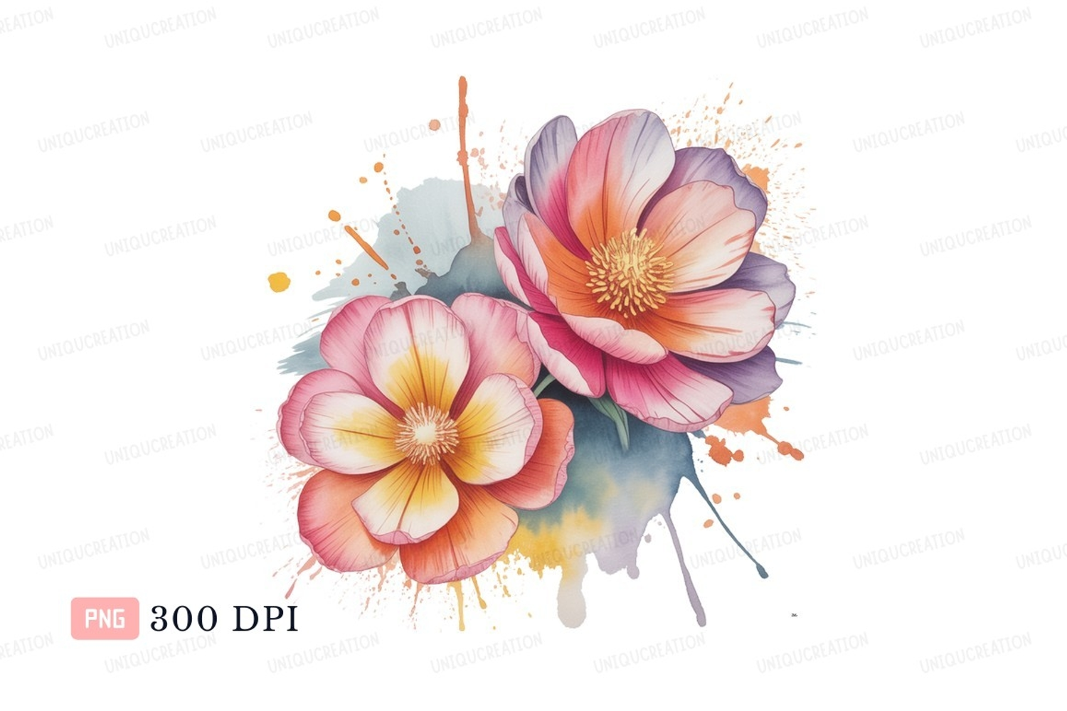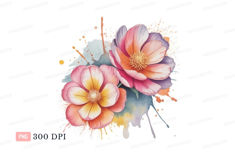 Similar Design Products to Pink orange purple floral watercolor splash image