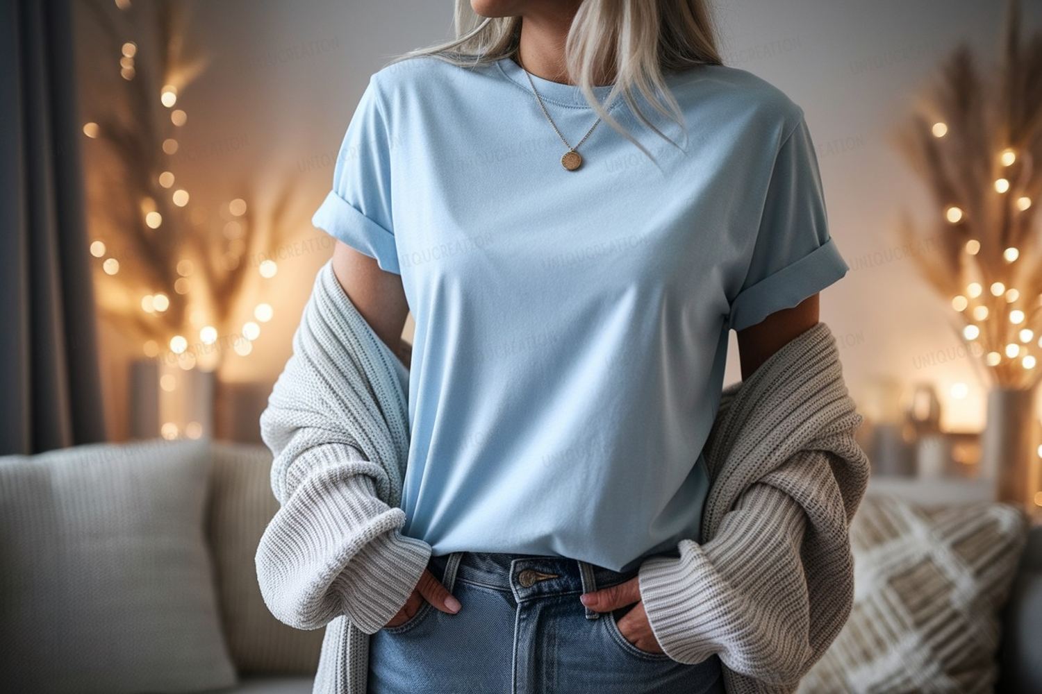Light blue t shirt mockup casual