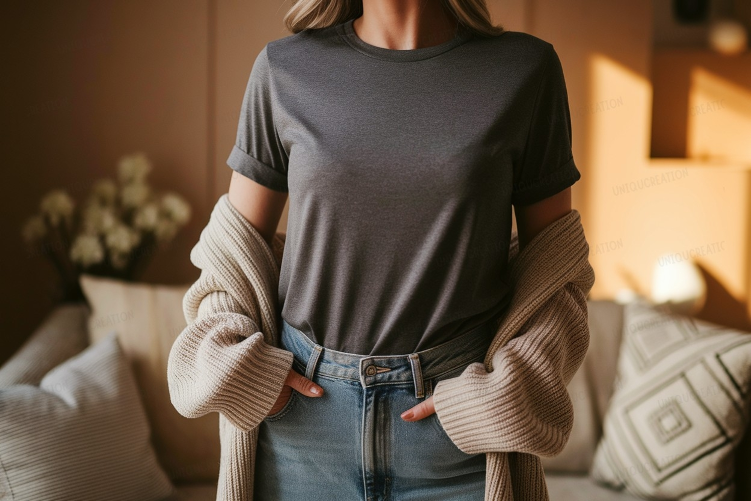 Fashion Shirt Clothing Casual Mockup Apparel Woman Jeans T Indoor