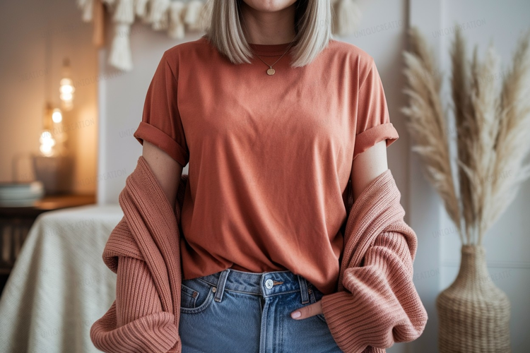 Similar Design Products to Terracotta tee and cardigan mockup denim jeans