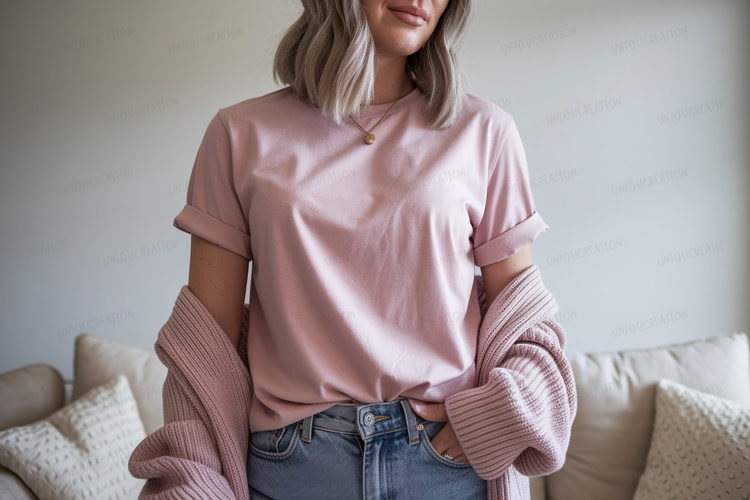 Fashion Shirt Pink Clothing Casual Mockup Blue Jeans Female Cardigan