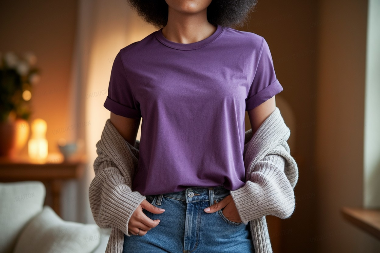 Similar Design Products to Purple shirt blue jeans cardigan image