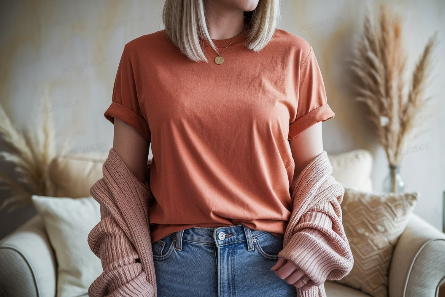 Fashion Pink Clothing Casual Mockup Woman Tee Jeans Cardigan Terracotta