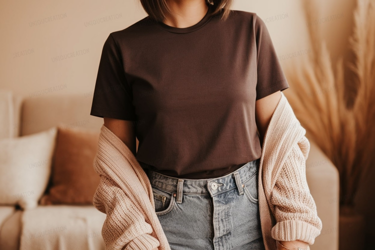 Similar Design Products to Brown shirt pink cardigan denim jeans mockup