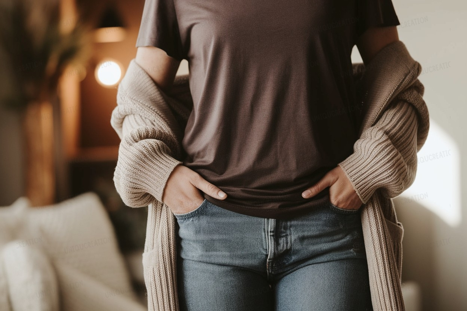 woman, man, female, male, person, fashion, clothing, apparel, casual, style, outfit, modern, chic, elegant, trendy, aesthetic, cozy, comfortable, soft, textured, knitwear, sweater, cardigan, knit, layered, cotton, fabric, stylish, everyday, relaxed, lifestyle, indoor, home, natural, light, shadows, studio, portrait, mockup, display, product, presentation, garment, simple, clean, neutral, background, upper body, torso, model, photo, image, picture, aesthetic, interior, decor, couch, pillows, vase, reeds, room