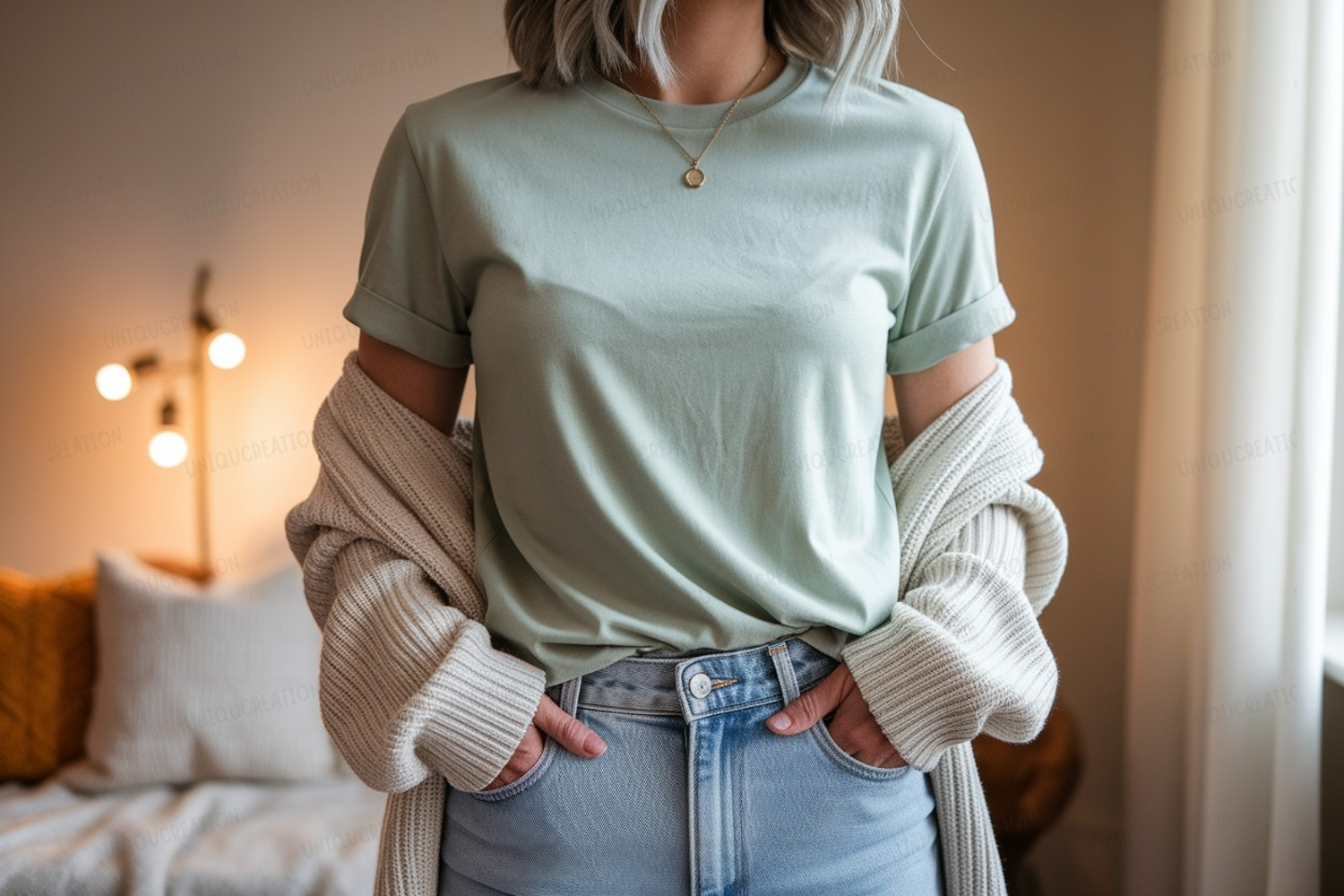 Shirt Clothing Casual Green Mockup Woman Blue Jeans T Cardigan