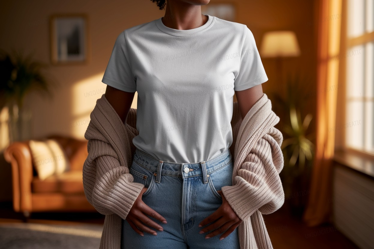 Fashion Shirt Clothing Casual Mockup Woman Jeans T Indoor Cardigan