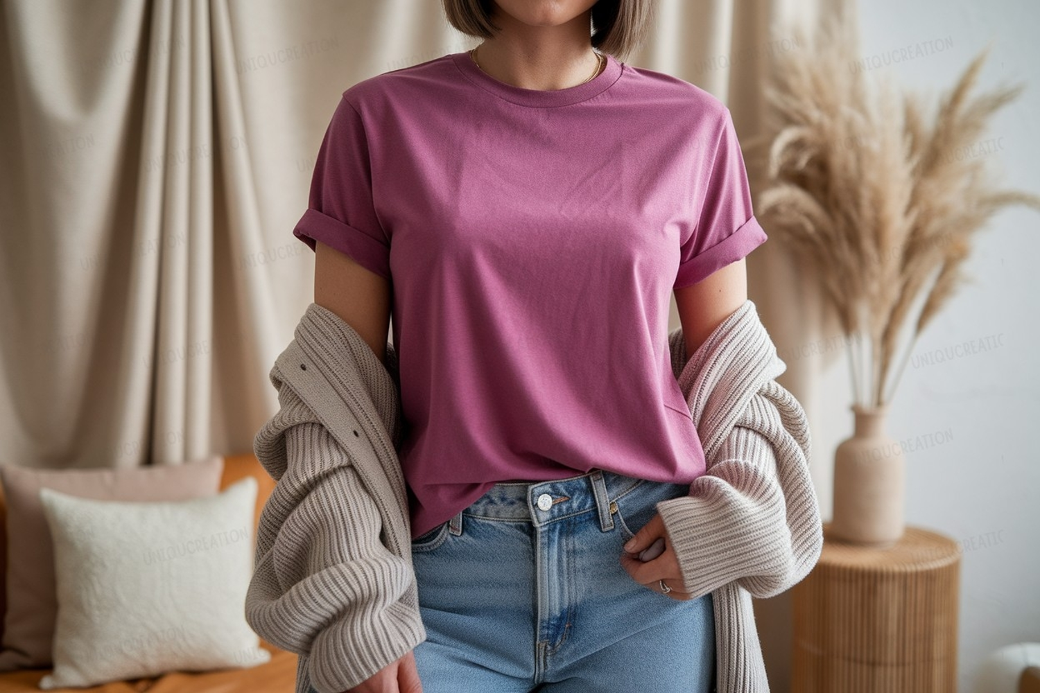 Similar Design Products to Woman wearing pink t shirt and jeans image