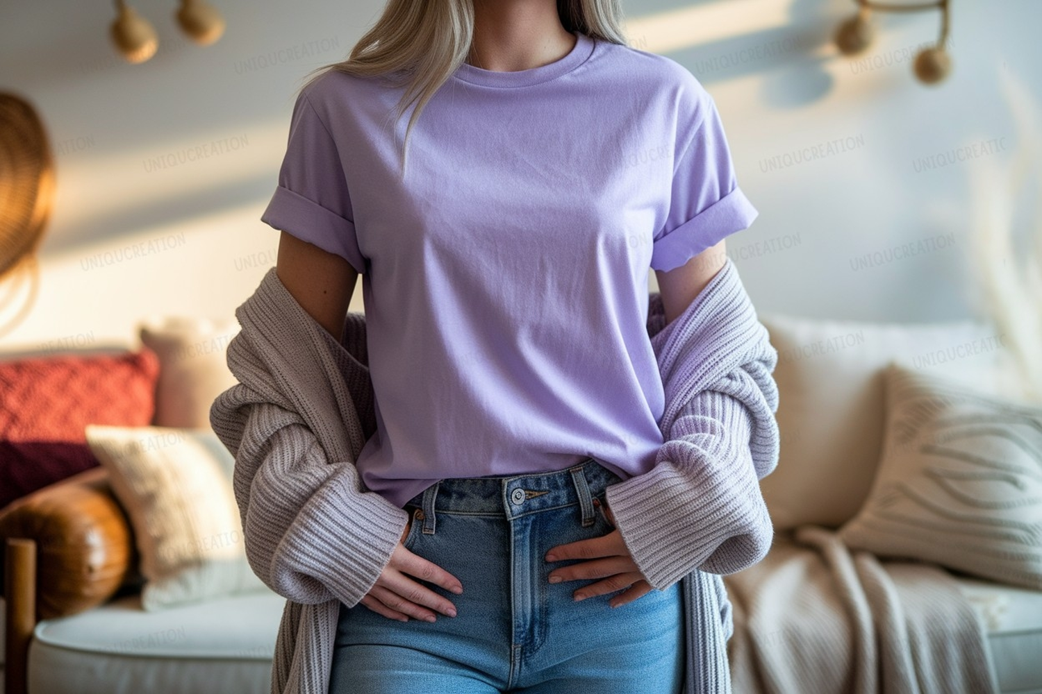 Fashion T-shirt Clothing Casual Mockup Apparel Lavender Jeans Female Cardigan