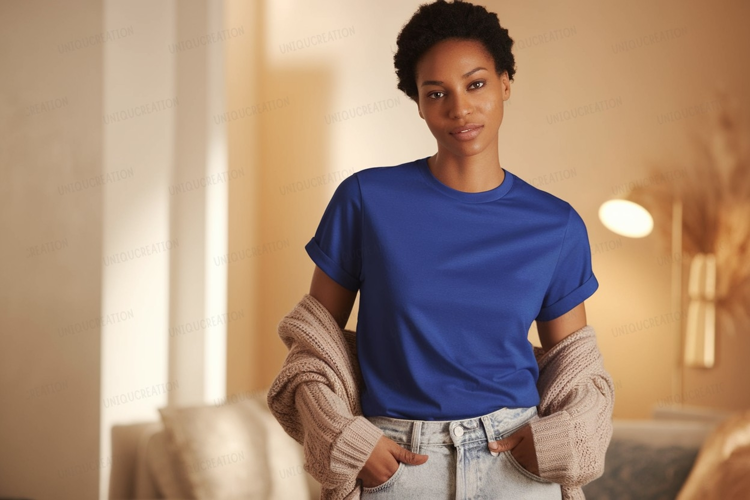 Similar Design Products to Woman wearing blue t shirt and cardigan image