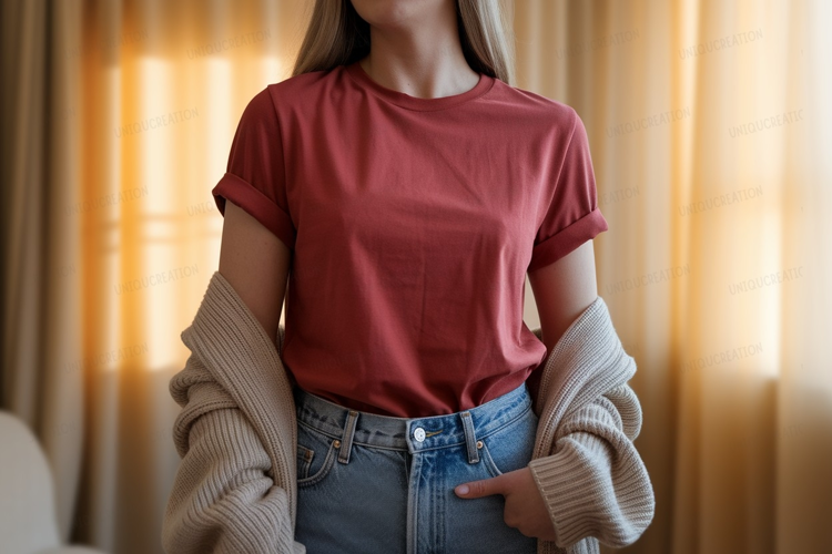 Similar Design Products to Woman wearing rust t shirt and jeans image