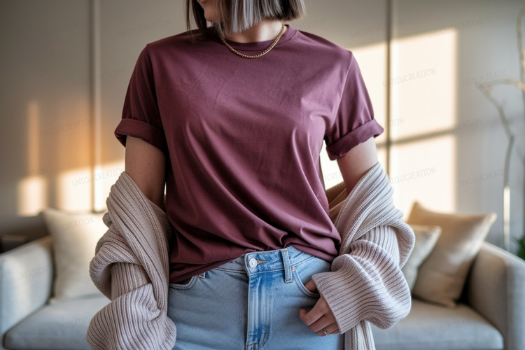 Similar Design Products to Maroon t shirt light jeans cardigan image