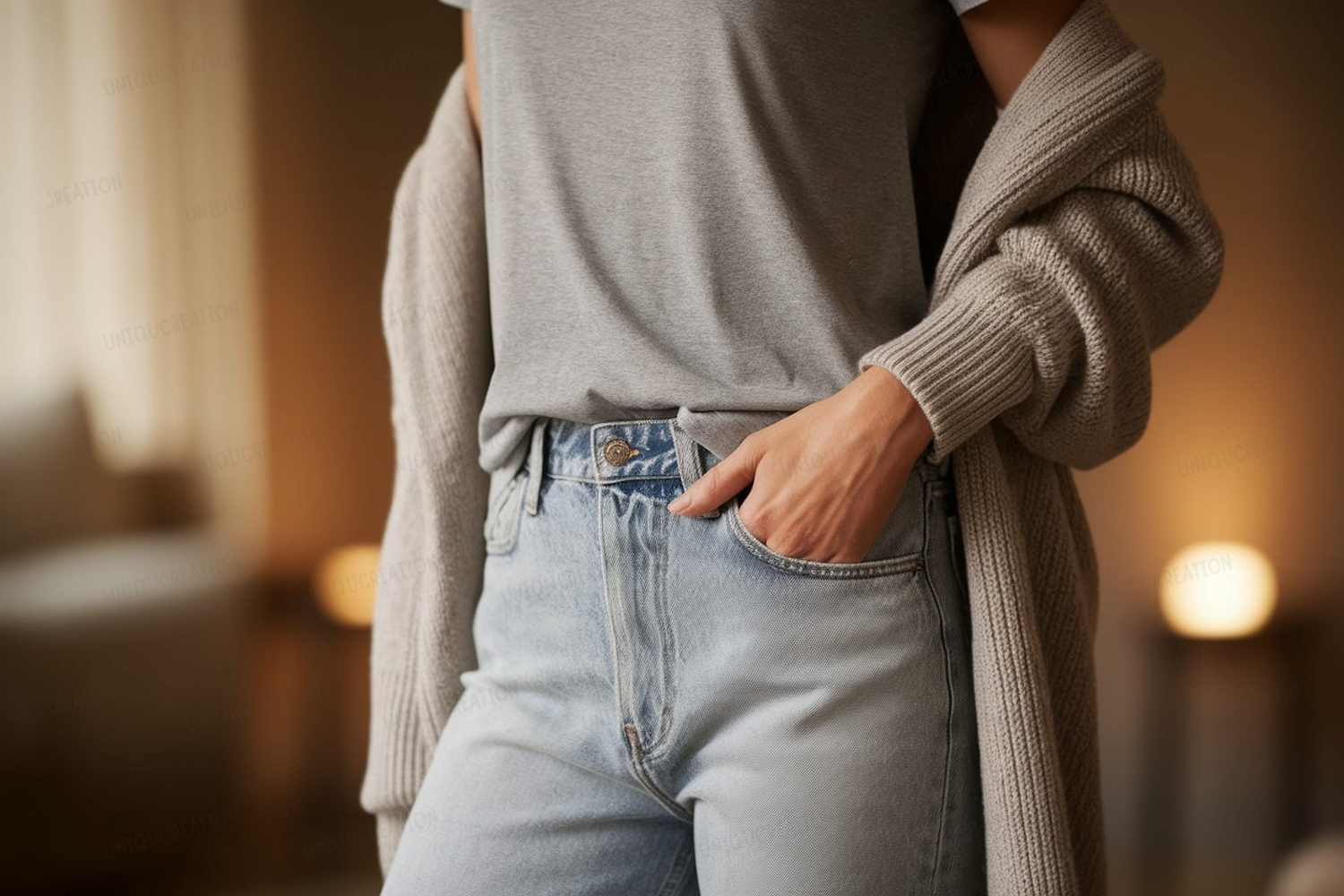 woman, man, female, male, person, fashion, clothing, apparel, casual, style, outfit, modern, chic, elegant, trendy, aesthetic, cozy, comfortable, soft, textured, knitwear, sweater, cardigan, knit, layered, cotton, fabric, stylish, everyday, relaxed, lifestyle, indoor, home, natural, light, shadows, studio, portrait, mockup, display, product, presentation, garment, simple, clean, neutral, background, upper body, torso, model, photo, image, picture, aesthetic, interior, decor, couch, pillows, vase, reeds, room