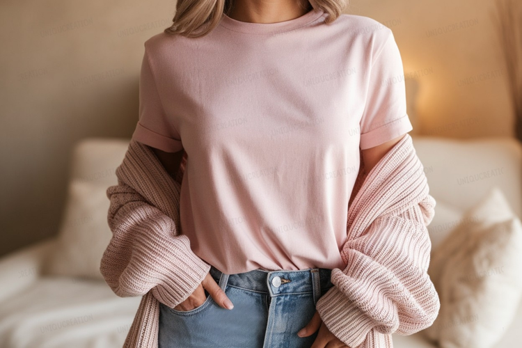 Fashion T-shirt Pink Clothing Casual Mockup Apparel Jeans Denim Cardigan